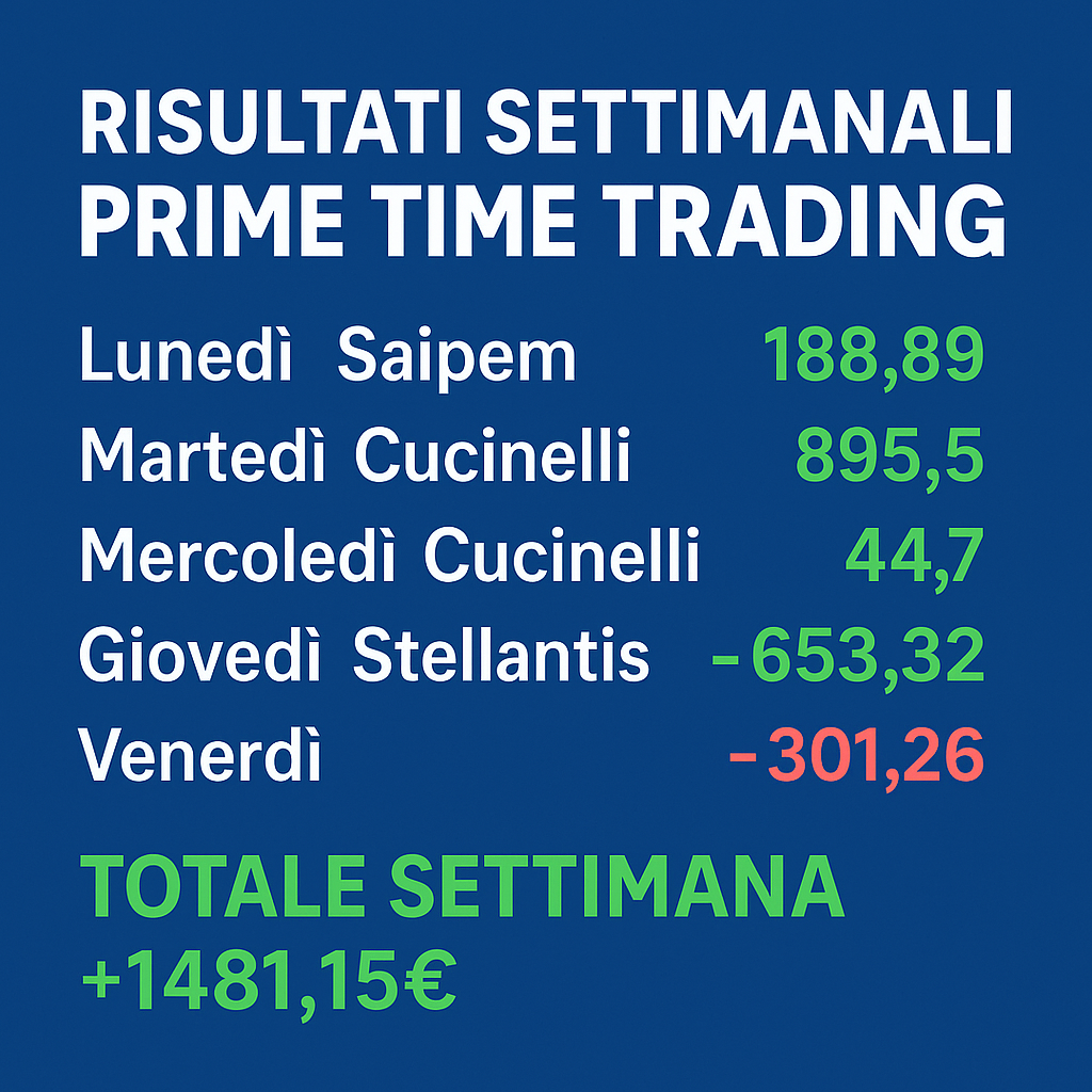 RISULTATI SETTIMANALI PRIME TIME TRADING +1.481,15€