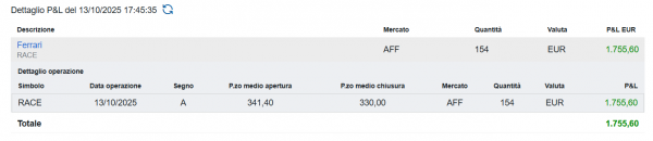 Come da prassi abbiamo liquidato le 154 azioni in asta di chiusura (al prezzo di 330€ ) realizzando un gain di 1.755,6 euro in poche ore