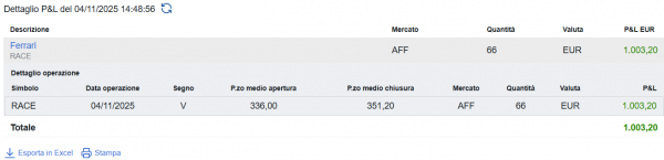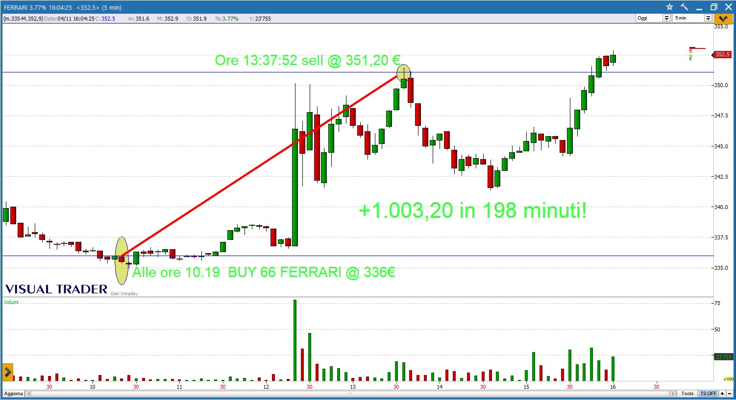 In questo articolo illustriamo un trade LONG su FERRARI; effettuato il 4Novembre 2025 dagli utenti di Prime Time Trading