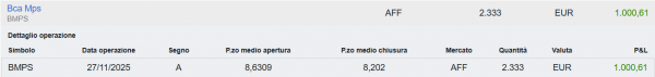 In questo articolo illustriamo un trade SHORT su MPS effettuato il 27 Novembre 2025