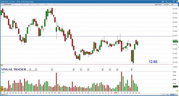 Tornano gli acquirenti su AMPLIFON dopo aver toccato martedì i minimi a 12.65€. Una chiusura superiore a 14.25€ fornirà un interessante segnale di inversione