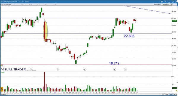 Ci attendiamo crescente volatilità su STM in vista della onference call di giovedì alle ore 9:30 a commento delle performance del quarto trimestre e dell’anno 2025 e le attuali previsioni sulle attività. Possibile intervenire sul breakout di area 25€