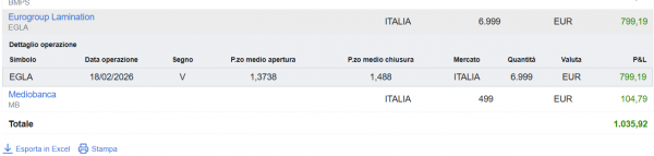 Big Trade su EUROGROUP LAMINATION: +799,19€ in poche ore