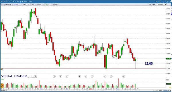 Supporto solido in area 12,7€. Possibile tentativo di rimbalzo tecnico da questi livelli.