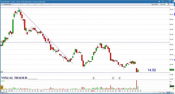 Reagisce dopo il sell-off. Possibile costruzione di base sopra area 14,5€.