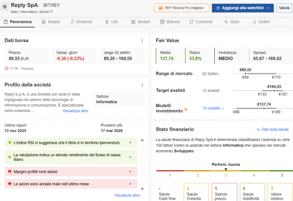 Reply presenta solidi fondamentali finanziari ed è tra i titoli più sottovalutati secondo InvestingPro.