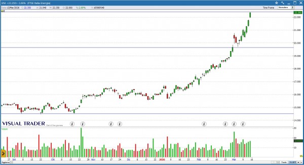 ENI è attualmente il titolo più forte del FtseMib40 con i prezzi che toccano i massimi da settembre 2008. Ogni storno è una opportunità di ingresso