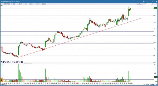PHARMANUTRA testa la resistenza chiave in area 76.5€: una chiusura superiore a questo livello, fornirà un significativo segnale di continuazione rialzista