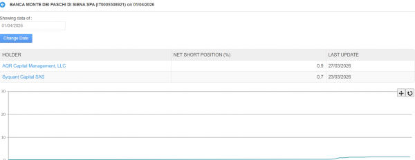 Monitoriamo MPS su cui (come evidente nell’immagine elaborata da Big Short Hunter https://www.sostrader.it/big-short-hunter-lp) le PNC si sono triplicate negli ultimi 15 giorni passate da 0.52% all’1.6% attuale venduto allo scoperto.. Attendiamo ricoperture per prendere in considerazione il titiolo