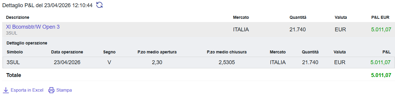 L’operazione si è conclusa con un guadagno di +5.011,07 euro, confermando come anche il comparto delle commodities possa regalare occasioni molto interessanti quando i prezzi arrivano su livelli tecnici estremamente rilevanti.