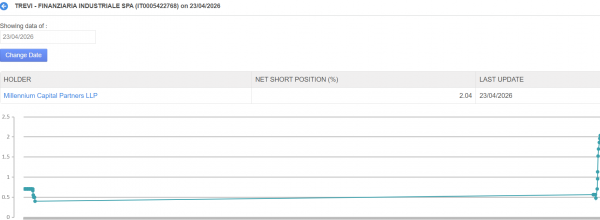 Monitoriamo TREVI FIN che non è mai stata così shortata (come evidente nell’immagine elaborata da Big Short Hunter https://www.sostrader.it/big-short-hunter-lp) le PNC non sono cresciute del 245.61% negli ultimi 15 giorni passando da 0.57% a 1.97%. Attendiamo ricoperture per prendere in considerazione il titolo