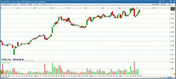 FINCANTIERI disegna una Long white che riporta i prezzi a contatto con la resistenza chiave a 15€. Una chiusura maggiore di questo livello, fornirà un solido segnale di continuazione rialzista
